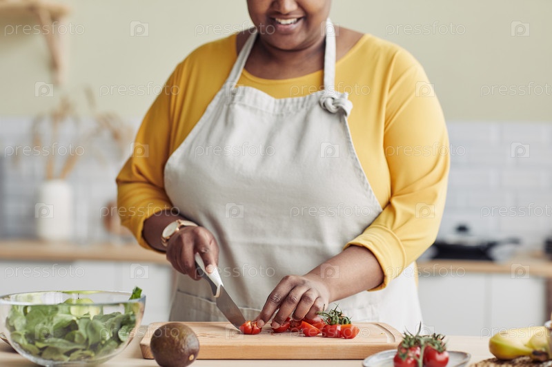 Черная женщина готовит на кухне