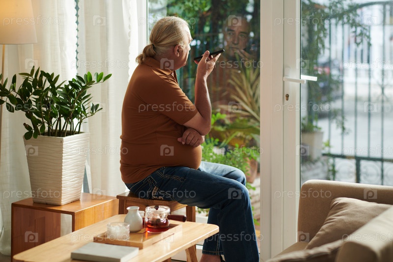 Старший мужчина слушает голосовое сообщение
