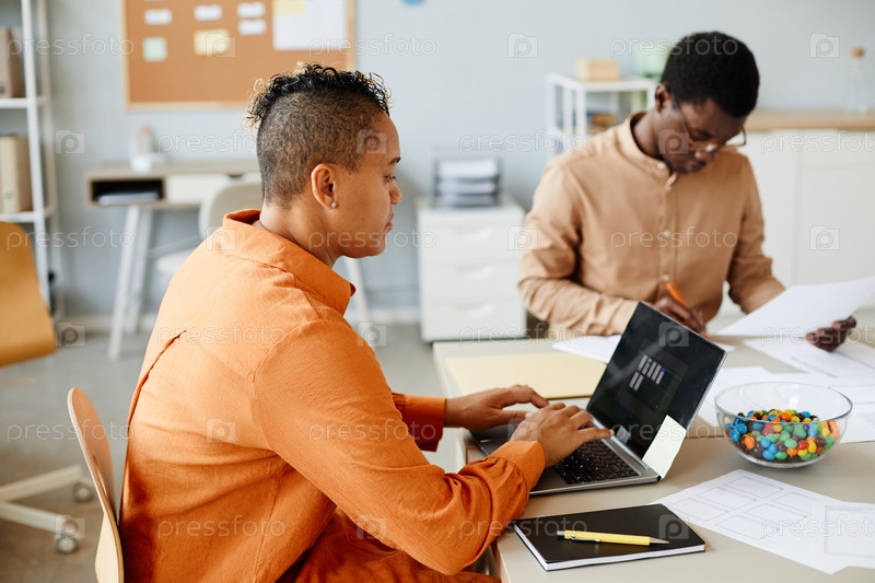 Молодая женщина, работающая над разработкой программного обеспечения Черная