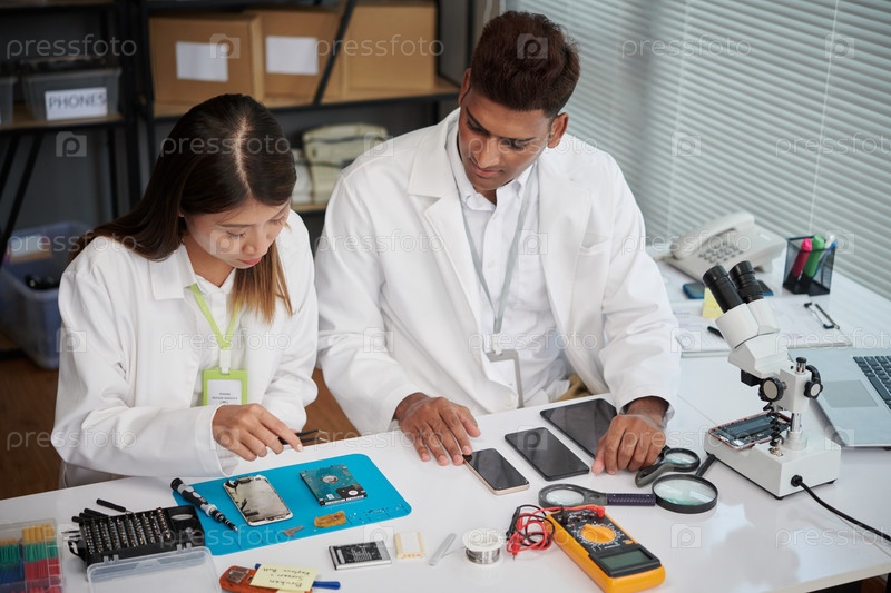 Команда техников, ремонтирующих гаджеты