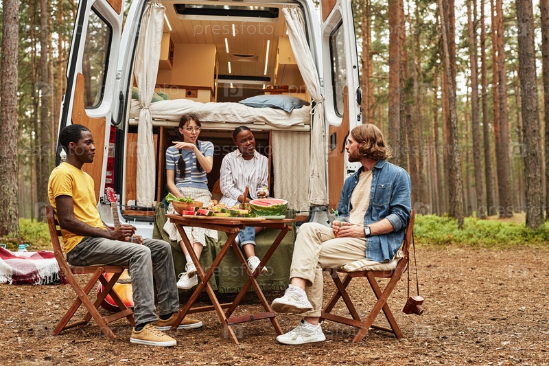 Молодые люди отдыхают в доме на колесах