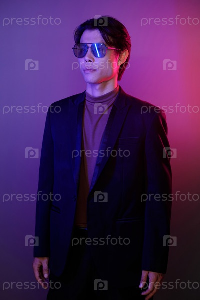 Уверенный мужчина в костюме и солнцезащитных очках