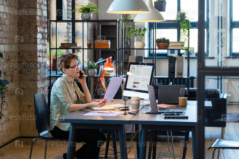 Деловая женщина, работающая в офисе на своем рабочем месте