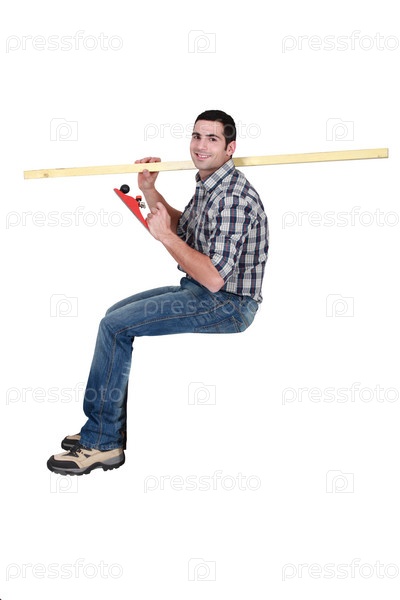 Плотник с деревянной доской