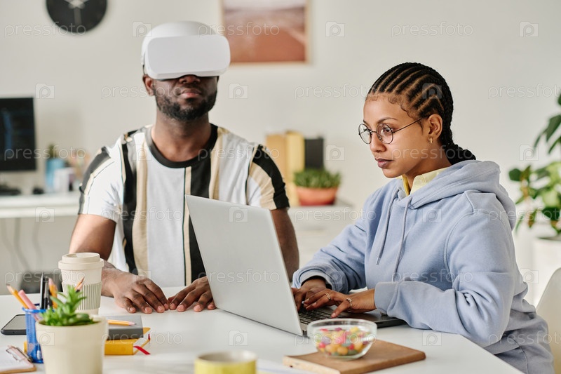 Коллеги тестируют очки VR в офисе