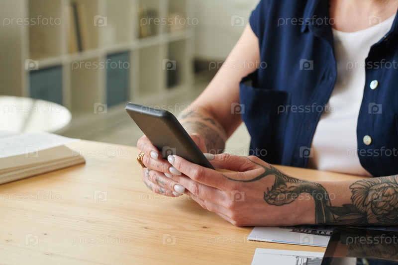 Женщина, работающая онлайн на смартфоне