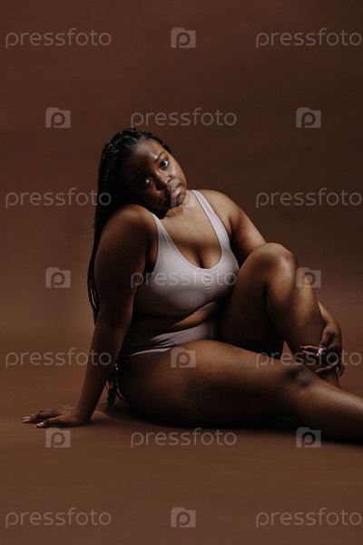 Черная женщина, сидящая в нижнем белье