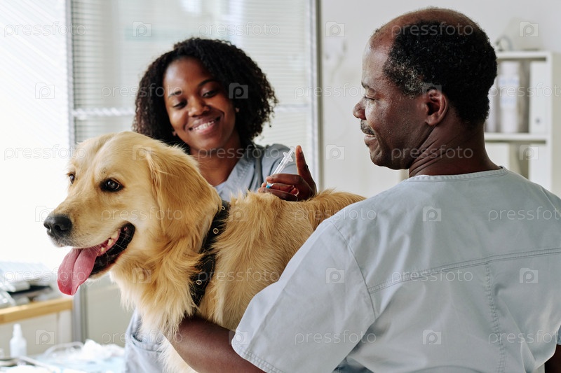 Ветеринарный врач делает инъекцию собаке