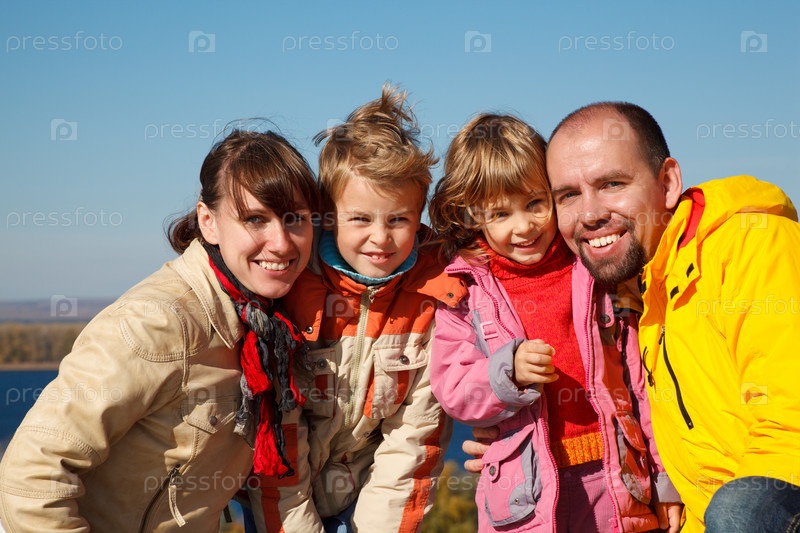 Семья из четырех человек на прогулке