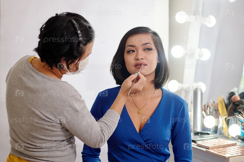 Макияж-художник, наносящий помаду