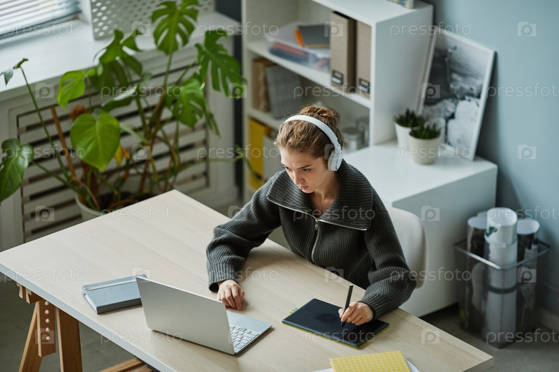 Дизайнер, работающий с графическим планшетом в офисе