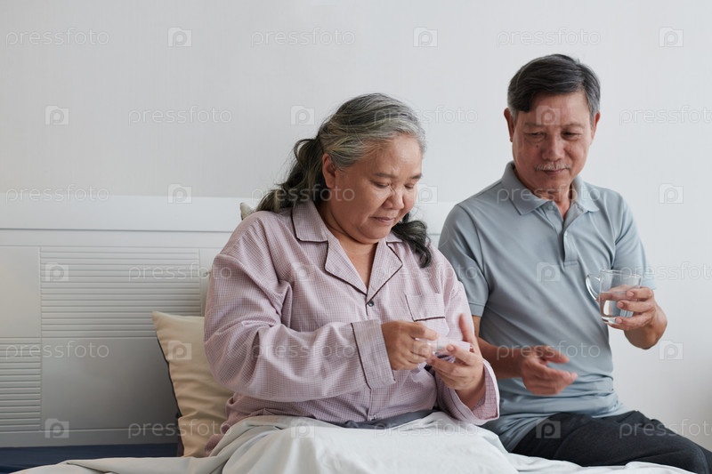 Заботливый муж дает воду больной жене