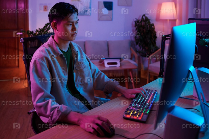 Мальчик-подросток работает на компьютере