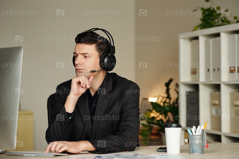 Пенсивный предприниматель читает электронные письма