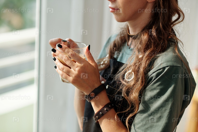 Творческая женщина пьет кофе