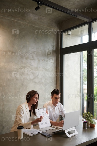Деловая женщина объясняет подробности отчета