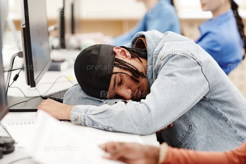 Молодой человек спит в классе