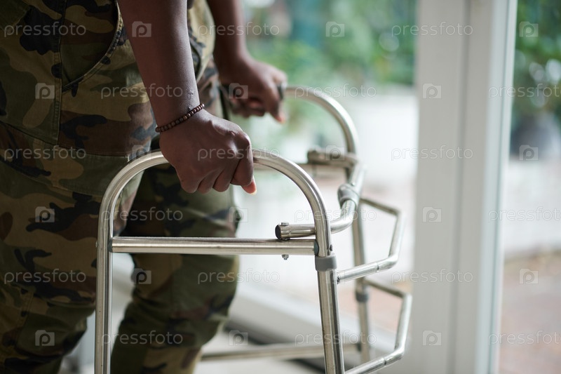 Военный человек с помощью ходока