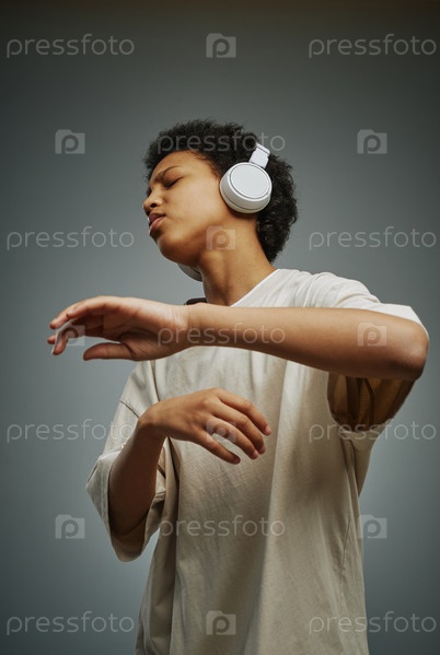 Молодая афроамериканская девушка наслаждается своей любимой музыкой в наушниках