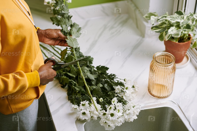 Женщина, стригущая свежие цветы