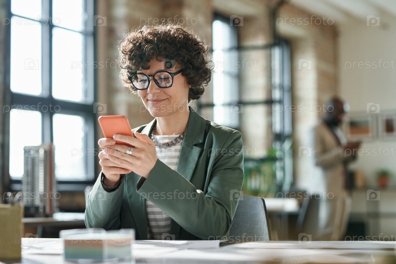 Деловая женщина, использующая смартфон на рабочем месте