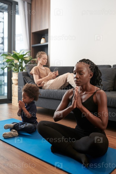 Мать и маленький сын медитируют