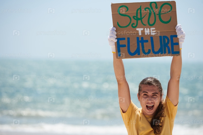 Кричащий активист показывает плакат