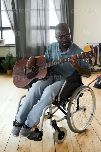 Инвалид играет на гитаре дома