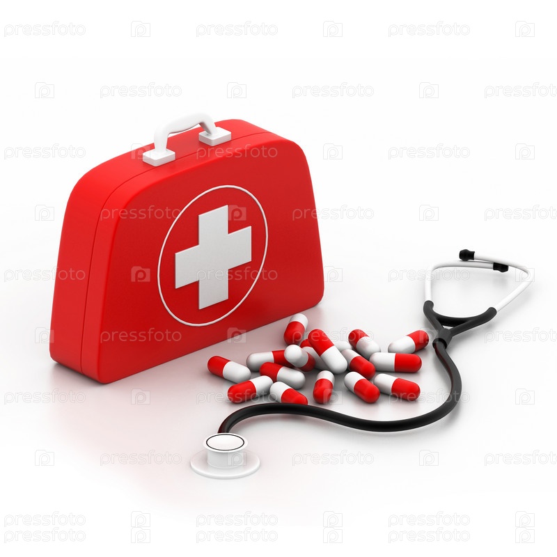Аптечка первой помощи на белом фоне