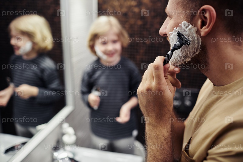 Обревающий бороду ближайший снимок Отец