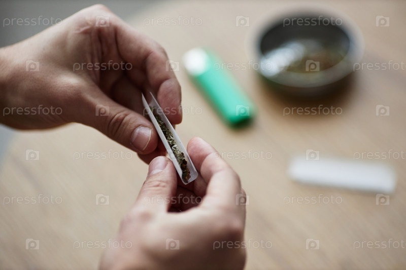Близое изображение мужских рук, закатывающих травяную сигарету в терапевтических целях