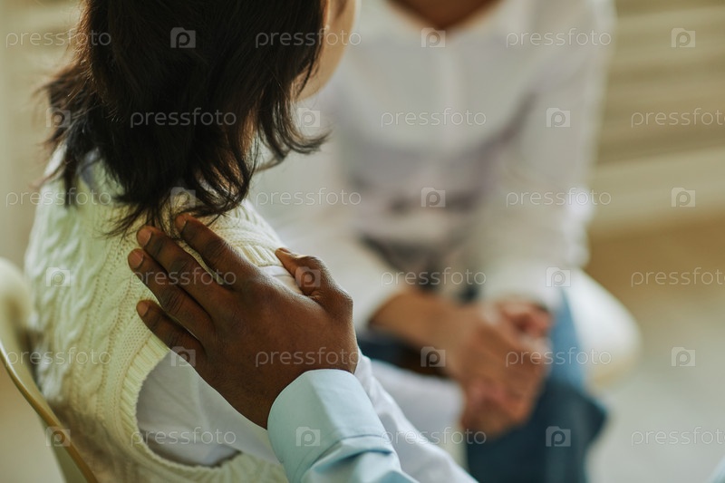 Рука молодого афроамериканца на плече школьницы с длинными темными волосами