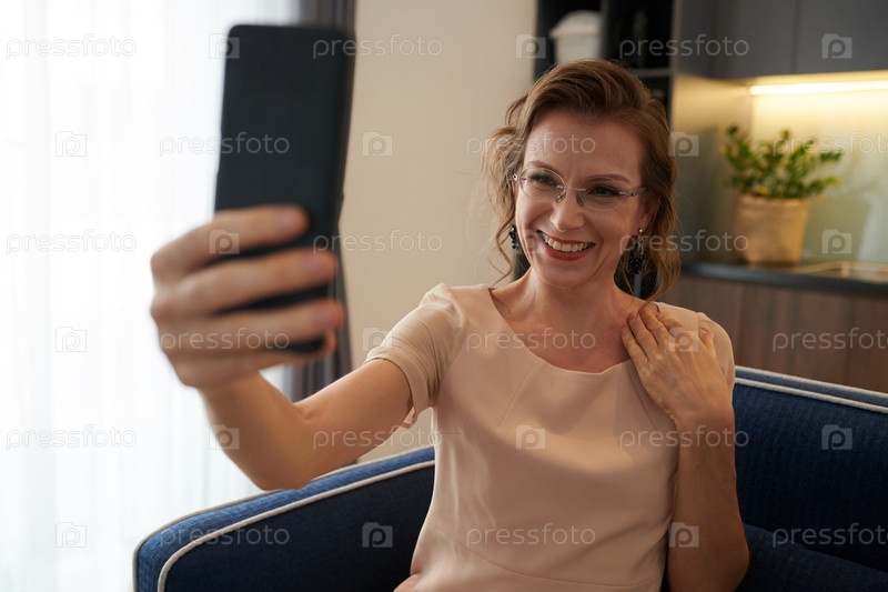 Женщина средних лет делает селфи