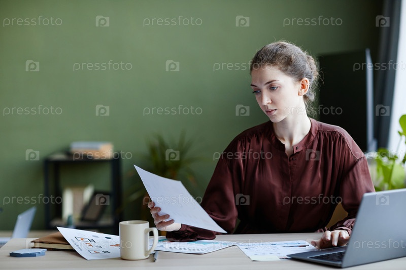 Женщина, работающая с документами дома