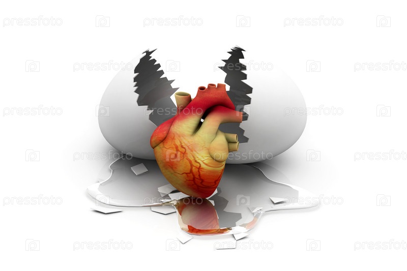 Сердце человека с открытым яйцом