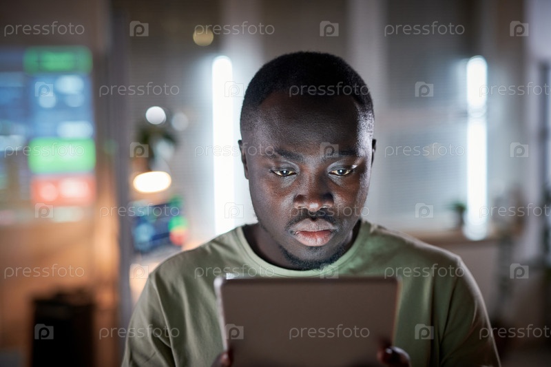 Бизнесмен, работающий на планшетном компьютере в офисе