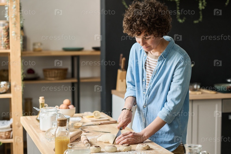 Женщина выпекает домашние булочки на кухне