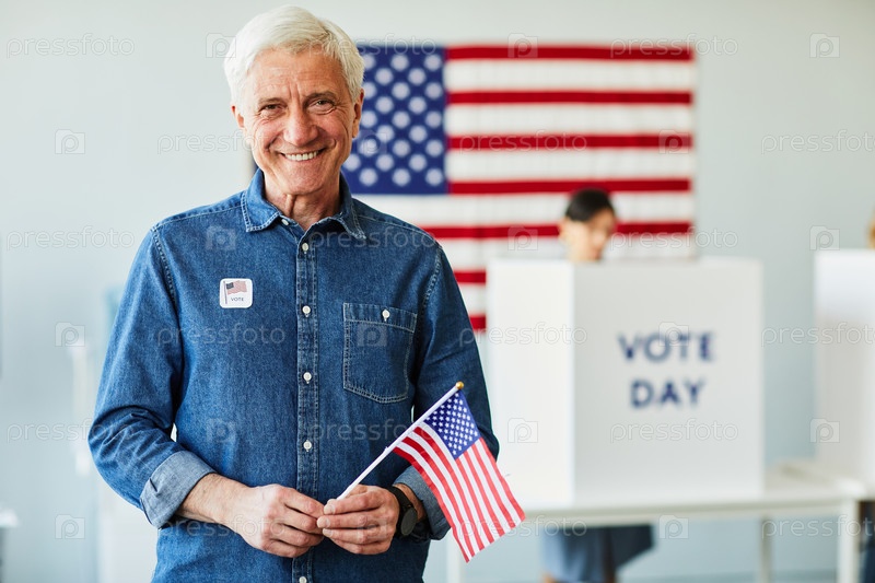 Улыбающийся старший мужчина голосует