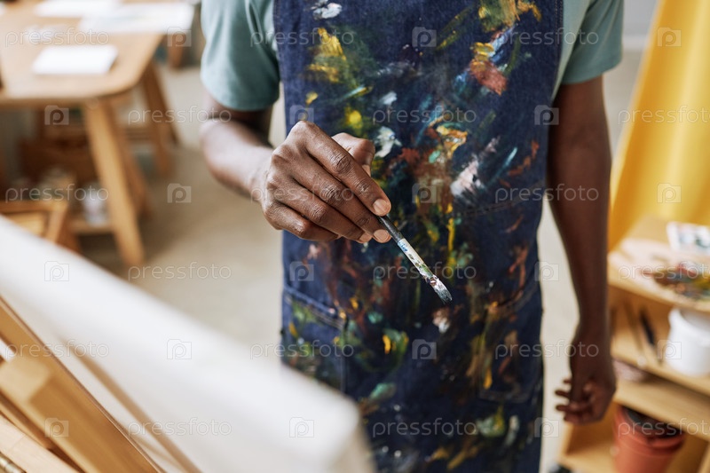 Сосредоточьтесь на руке молодого афроамериканского художника с помощью кисти