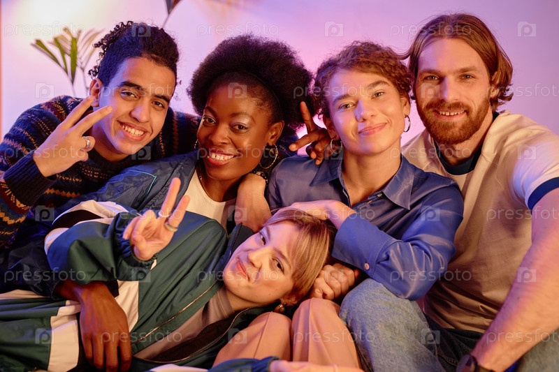 Молодые люди позируют вместе на ретро-хаус-партии