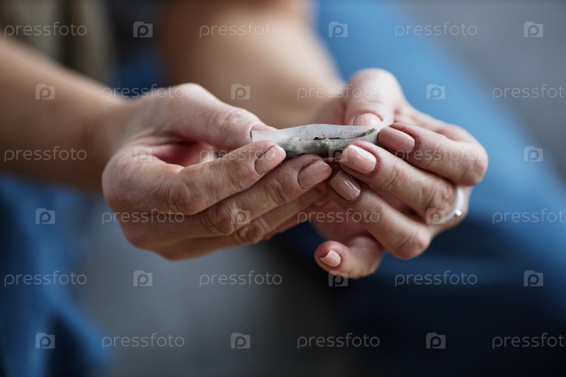 Близкий план женских рук, заворачивающих сигарету