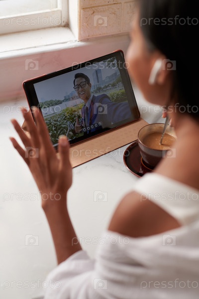 Женщина, совершающая видеозвонки с коллегами по работе
