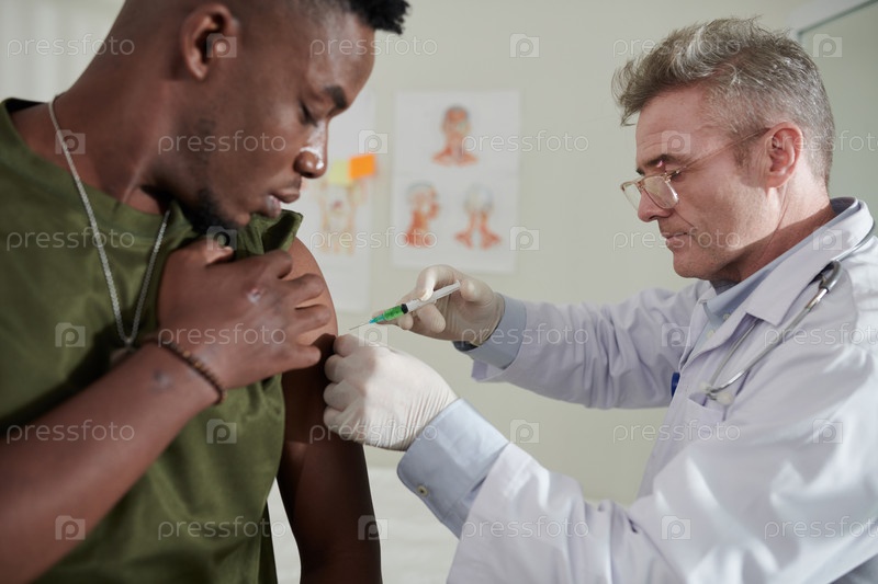 Медицинский работник, вводящий вакцину