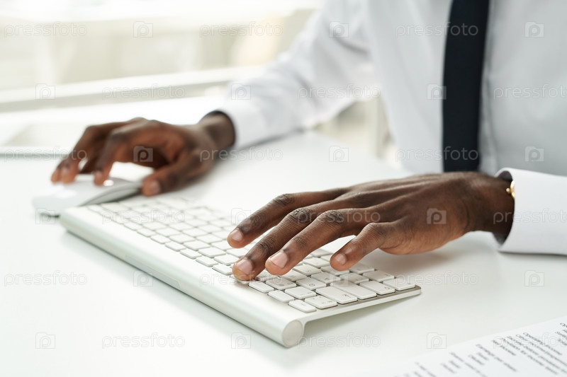 Бизнесмен, печатающий на компьютерной клавиатуре