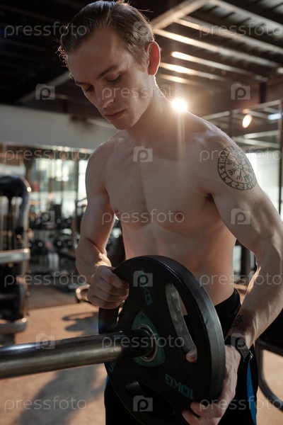 Спортсмен, вкладывающий больше веса на барбелл