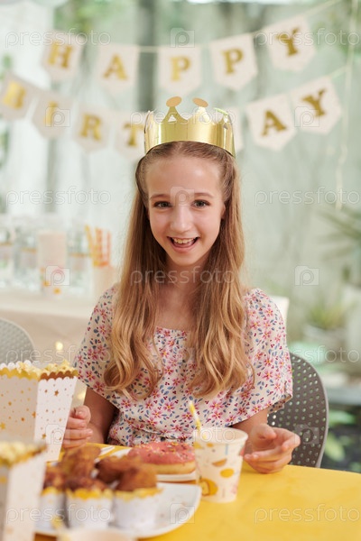 Девчонка с днем рождения, носящая бумажную корону