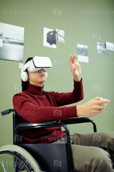 Человек, использующий VR-гарнитуру на выставке