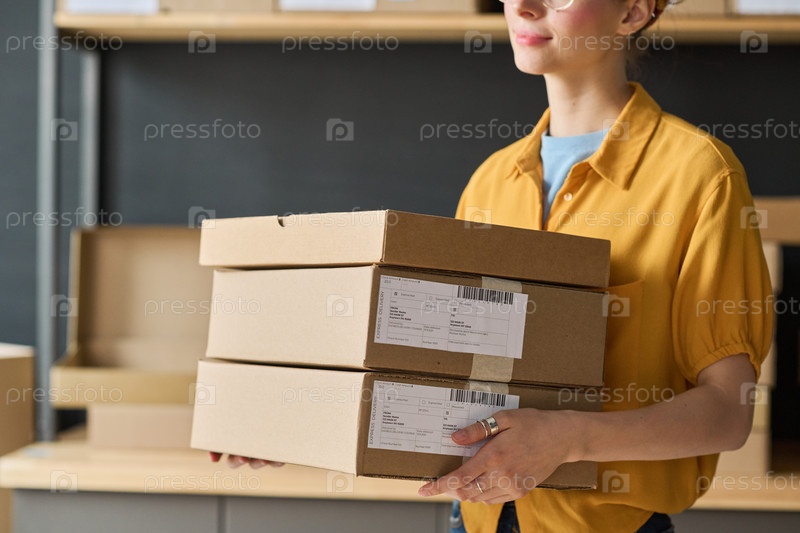 Работник, работающий с посылками на складе