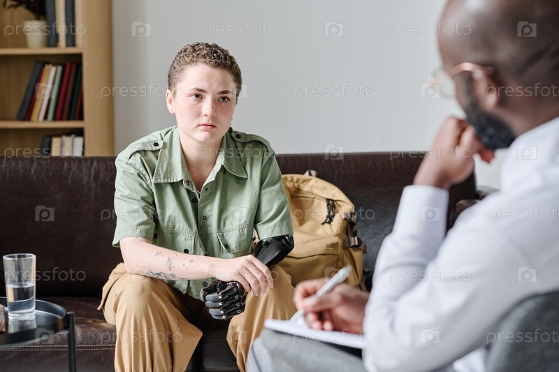 Женщина с инвалидностью, посещающая психотерапевта