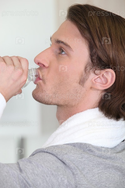 Мужчина пьет воду после тренировки